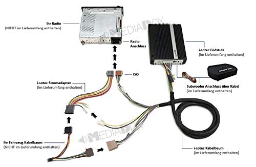 Inklusive 1 x ISO Kabelsatz, 1 x Adapterkabel für Werks-Radio, 1 x I-sotec Subwooferkabel AD-226