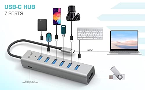 I-tec Hub USB-C a 7 porte - cavo da 30 cm, 7 USB A 3.2 Gen1 con supporto di ricarica rapida BC 1.2 (fino a 7,5 W per connettore)