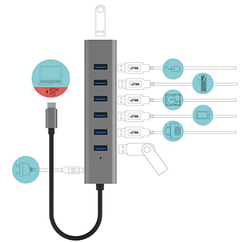 USB-C HUB di ricarica per fino a 7 dispositivi. Velocità di ricarica fino a 7,5 W per porta