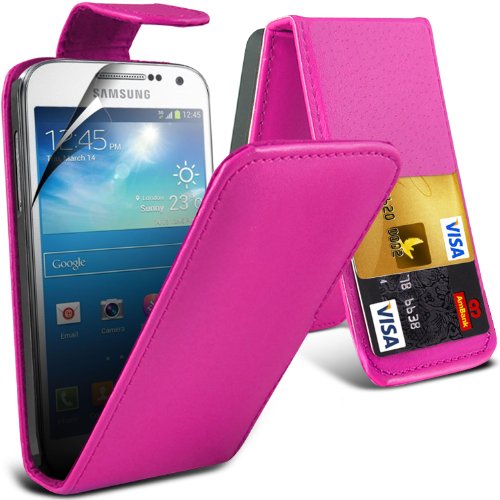 I-Tronixs (Hot Pink) Samsung Galaxy S4 Mini i9190 High Quality Faux Carta di Credito/Debito Slot vibrazione del cuoio della cassa della pelle della copertura & Proteggi Schermo LCD by