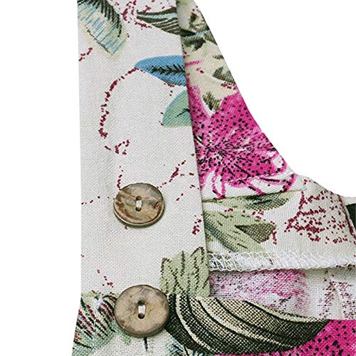 I3CKIZCE Salopette Pantaloni da Donna Tuta Lunga in Lino per Donna Stampe Floreali Boho Pantaloni Lunghi Stile Casual Gamba Larga da Donna con Cinturini Tasche Laterali (Biancaneve, M)