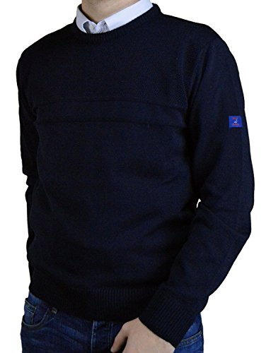 Iacobellis Maglione Uomo Pullover Paricollo Misto Lana Merinos Punto Riso Made in Italy XXL 52 Blu