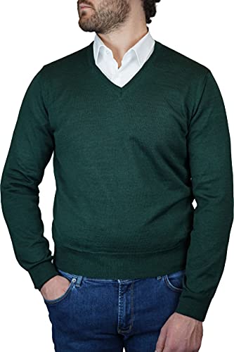 Iacobellis Maglione Uomo Pullover Scollo V Misto Lana Merinos Extrafine Made in Italy L 48 Verde Foresta