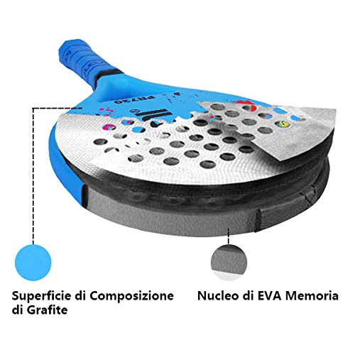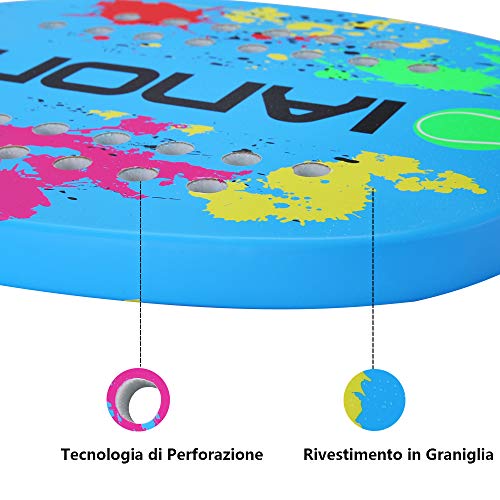 Ianoni Racchetta Tennis da Spiaggia Rivestimento in Graniglia Superficie in Fibra di Carbonio e Nucelo di Eva Schiuma ad Effetto Memoria