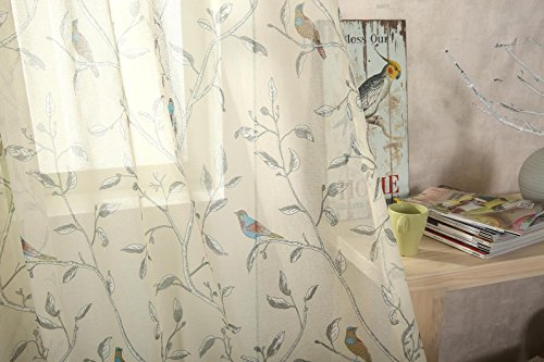 Ians Emporium Oriental Bird Shabby Chic - Cortina de gasa con ranura superior, color crema/beige (122 cm)