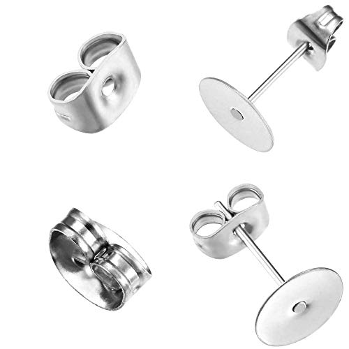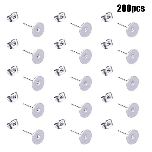 Ianulus Base Orecchini, 200 Pezzi Piatto Orecchini a Bottone, Perni per Orecchini in Acciaio Inossidabile, Orecchini Piatti Fai da Te per Creare Orecchini, Regali Donna, Gioielleria (Silver)