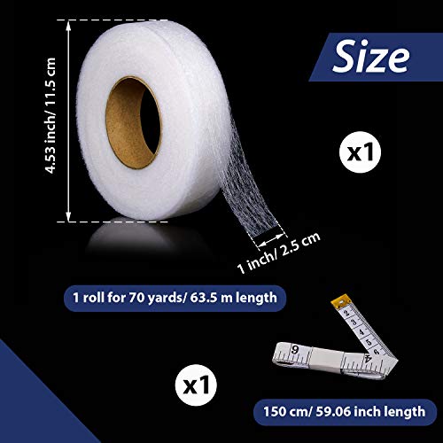 70 Iarde Nastro per Orlo Stirare Tessuto Wonder Web Extra Largo Nastro di Stirare Rotolo di Nastro Non Cucire con Metro a Nastro per Jeans Hems Tendina Pantaloni Abbigliamento (25 mm Larghezza)