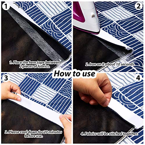 Funzionamento facile senza cucire: è sufficiente inserire la sezione adatta del nastro per orlo tra il tessuto e il tessuto e il ferro può unire i 2 strati di tessuto dopo 10-30 secondi;
