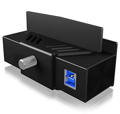 ICY BOX IB-HUB1408-U3 - Hub a 4 porte USB 3.0 per monitor e tavolo, 4 porte USB 3.0 (Type-A), in alluminio, senza attrezzi, colore: Nero