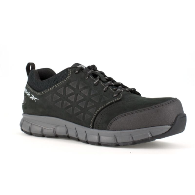Reebok IB1036-1S3 excel light scarpe basse da lavoro antinfortunistica in nylon/pelle nero S3 con puntale in alluminio e resistenti all'acqua. Caratteristiche: - Conforme agli standard di sicurezza EN ISO 20345 S3 SRC. - Antistatico. - Suola interna: Memory Tech - Soletta massaggiante - Categoria: S3 + SRC. - Intersuola: Non metallica resistente alle forature. - Materiale: Pelle resistente all'acqua con punta ad alta abrasione. - Miscela EVA resistente a carburante, olio e abrasione ExtraLight - Punta: Alluminio resistente 200 Joule. - Punta larga e leggera per un maggiore comfort. - Pelle resistente all'acqua e all'abrasione. - Colore: Nero.
