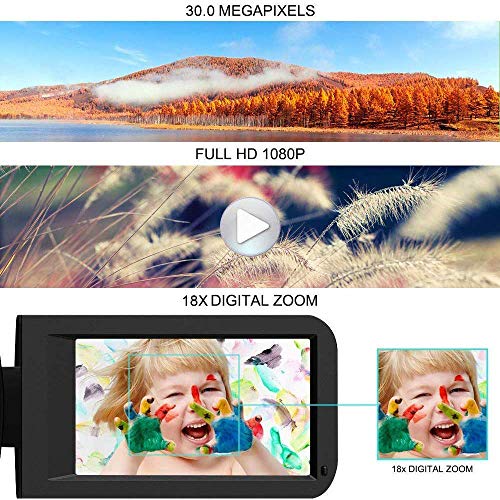 Videocamera FHD da 30 MP e 1080P: questa videocamera digitale per YouTube supporta le riprese di video e foto Full HD 1080p (30 FPS) 30 MP. Inoltre, supporta schermo IPS da 3 pollici, zoom digitale 18X e telecomando, webcam, pausa, anti-shake, bellezza, microfono interno, uscita HDMI e scheda SD da 4 GB a 128 GB (scheda SD non inclusa) e così via. Questa videocamera YouTube è così robusta e leggera che puoi portarla in giro. In una parola, sarebbe un regalo perfetto per genitori e figli.