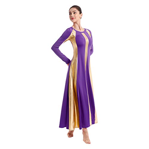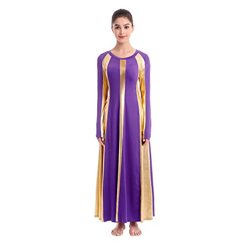 Ibakom Abito da donna a maniche lunghe, con ruches, stile liturgico, abito da ballo, abito da lutto, abito lungo viola. L