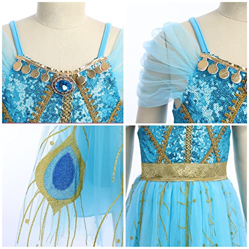 IBAKOM Ragazze Abito Principessa Jasmine Costume Arabian Aladdin Paillettes Carnevale Halloween Cosplay Party Compleanno Spalle Scoperte Vestito da Ballo Style M 3-4 Anni