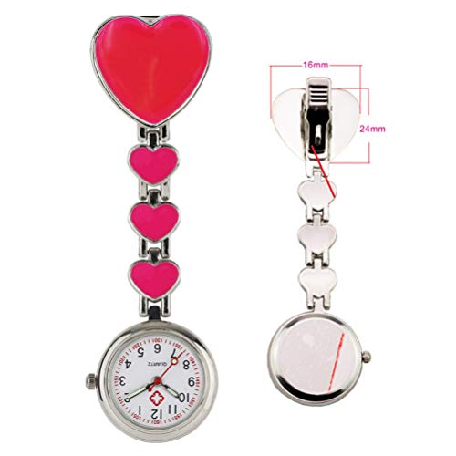Ibasenice Spilla a Forma di Cuore Orologio Spilla Bagliore al Quarzo Scuro Orologio Appeso Retro Orologio da Tasca Orologio Regalo per Infermiere con Clip Pin (Rosato)