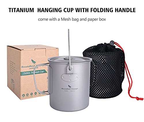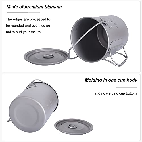 IBasingo Ti3039D - Tazza da campeggio in titanio, con coperchio pieghevole, per attività all'aperto, ultraleggera, per caffè, acqua e picnic, 750 ml