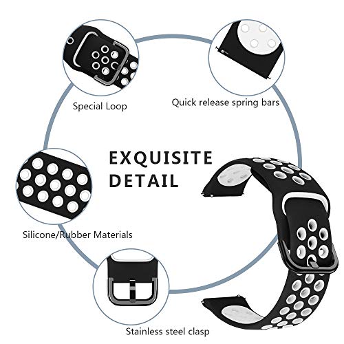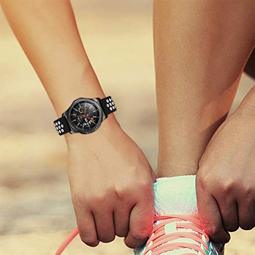 IBazal 22mm Cinturino Galaxy Watch 46mm Silicone Ricambio per Samsung Galaxy Watch 3 45mm/Gear S3 Frontier Classic, Huawei Watch GT/GT 2 46 mm, Ticwatch Pro/E2/C2 Bands - Nero/Bianco