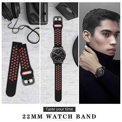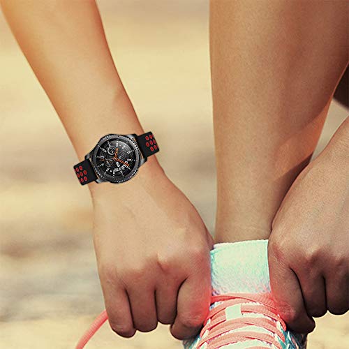 IBazal 22mm Cinturino Galaxy Watch 46mm Silicone Ricambio per Samsung Galaxy Watch 3 45mm/Gear S3 Frontier Classic, Huawei Watch GT/GT 2 46 mm, Ticwatch Pro/E2/C2 Bands - Nero/Rosso