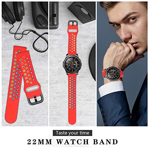 IBazal Cinturino Galaxy Watch 46mm Silicone 22mm Ricambio per Samsung Galaxy Watch 3 45mm/Gear S3 Frontier Classic, Huawei Watch GT/GT 2 46 mm, Ticwatch Pro/E2/C2 Bands - Arcobaleno Rosso