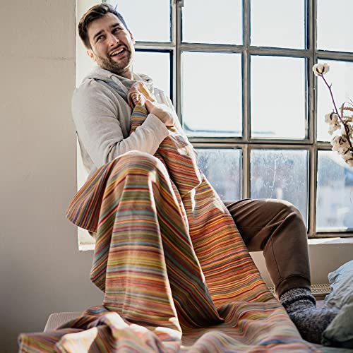 Controllo biologico + Made in Germany: coperta con motivo a righe colorate in 100% puro cotone, particolarmente traspirante e termoregolante.