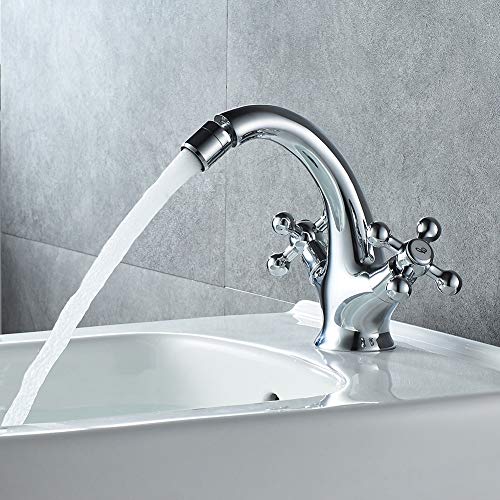 Ibergrif Lucca, Bidet Lavabo con Doppia Leva, Rubinetto Bagno Vintage, Cromo