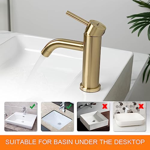 Ibergrif M11003Y Rubinetto Bagno Classico, Miscelatore Monocomando Lavabo, Rubinetto Lavabo per Acqua Calda e Fredda, Acciaio Inossidabile, Oro