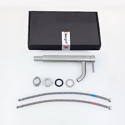 Ibergrif M11203A Rubinetto Bagno Classico, Miscelatore Monocomando Lavabo, Rubinetto Lavabo per Acqua Calda e Fredda, Acciaio Inossidabile Spazzolato