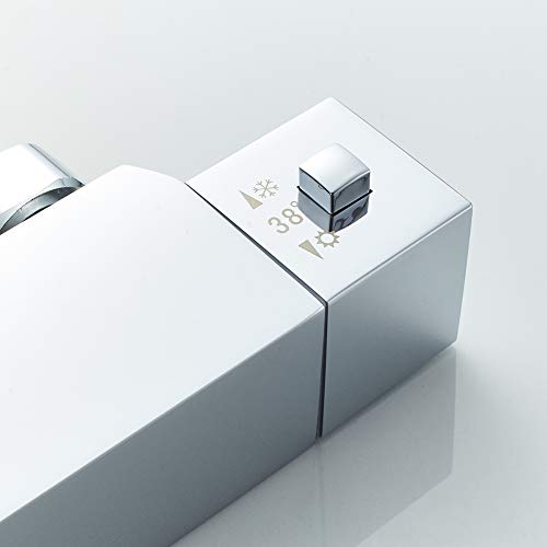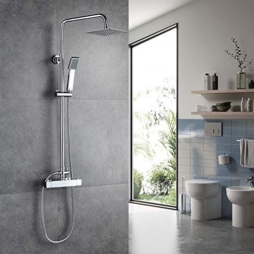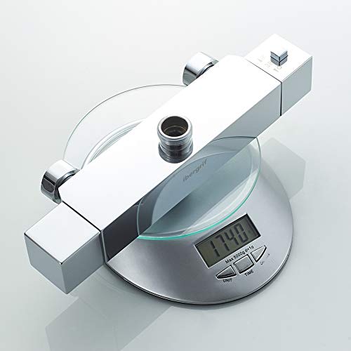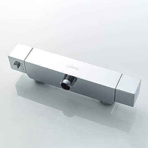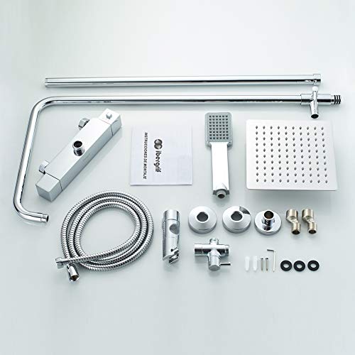 Ibergrif M21807 - Colonna doccia quadrata in ottone con metallo e plastica, con rubinetto termostatico, argento