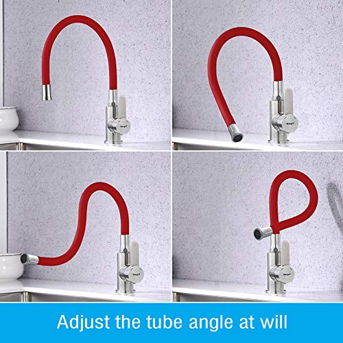 Ibergrif M22119-1 - Rubinetto da cucina con beccuccio flessibile universale, Rosso
