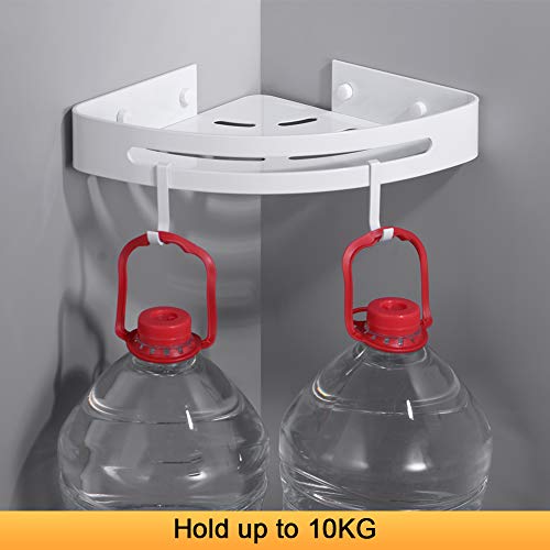 Ibergrif M34033W - Mensola Doccia con 2 Ganci, Angolo Organizer per il Bagno, Cestello Portaoggetti, 3M Senza Trapani, Spazio in Alluminio, 2 Confezioni
