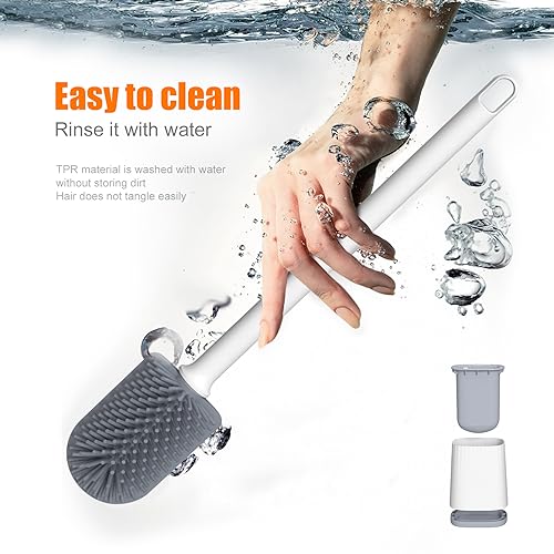 Pulizia profonda a 360°: la testina in silicone è realizzata in materiale TPR di alta qualità, che non si usura né si deforma. Lo scopino morbido e piatto può entrare in qualsiasi angolo e fessura senza graffiare l'interno della toilette per una pulizia perfetta.