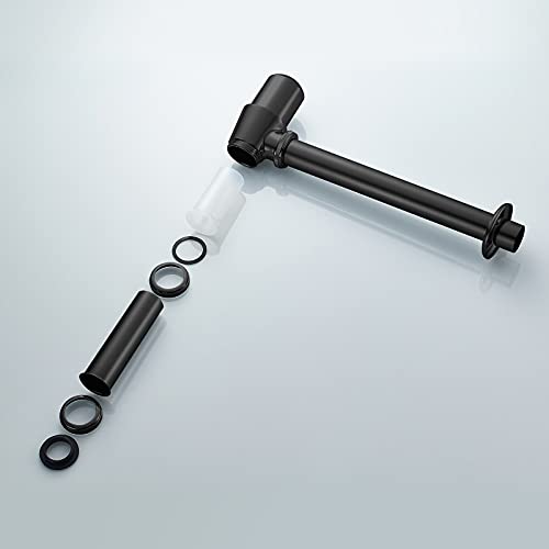 Ibergrif Sifone Universale per Lavabo Bagno in Ottone, 1 1/4" x 32 mm Sifoni Tubo, Altezza Regolabile 16.5-23.5 cm, Sifone con Manicotto in Gomma, Anti-odore & insetti, Nero