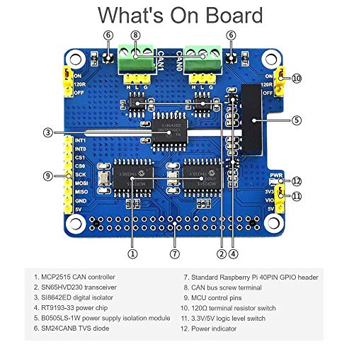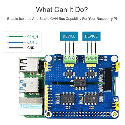 IBest 2-CH Can Hat 2-Channel Isolated Can Bus Expansion Hat Board for Raspberry Pi 4B/3B+/3B/2B/Zero/Zero W,MCP2515 + SN65HVD230 Dual Chips Solution with Multi Onboard Protection Circuits