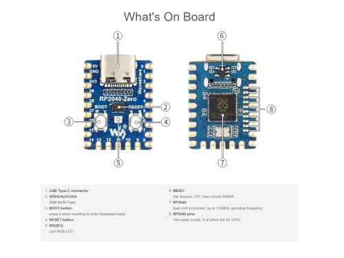 IBest RP2040-Zero Mini Development Board Based on Raspberry Pi Microcontroller RP2040,High-Performance Pico-Like MCU Board,Low-Cost, USB-C Connector