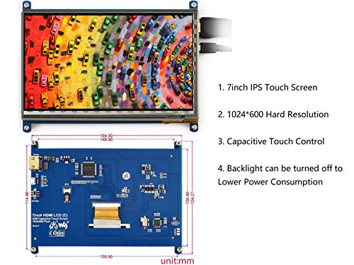 IBest Waveshare for Raspberry Pi 7 inch Capacitive Touchscreen IPS Display 1024 * 600 HDMI LCD C Touch Screen with Bicolor Case for Raspberry Pi 4 3B+/3/2 B/B+/ Banana Pi/Banana Pro/BB Black