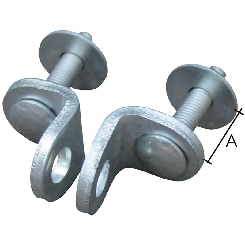In acciaio zincato. per applicazione di lucchetti. foro ø 14 mm.fisso - dist.perno/occhio mm.16 (a)