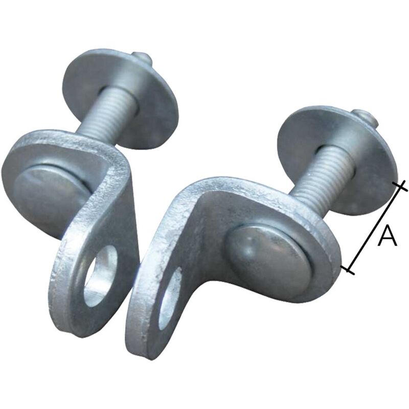 In acciaio zincato. Per applicazione di lucchetti. Foro Ø 14 mm.