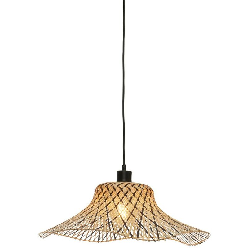 Sospensione in bamboo intrecciato a forma di cappello ondulato 1 lampadina max 60W attacco E27 non inclusa mis: 50x15 cm cavo rivesto con tessuto nero