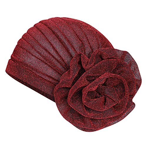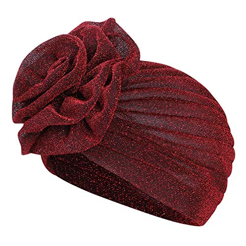 IBLUELOVER Cappello Turbante Chemo cap per Le Donne Fiore Copricapo Perdita di Capelli Beanie cap India Bandana Foulard Night Sleep cap Musulmano Hijab cap per Protezione dei Capelli,Rosso Vinaccia,M
