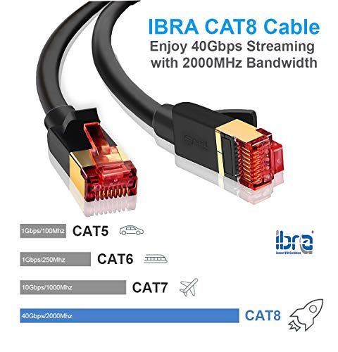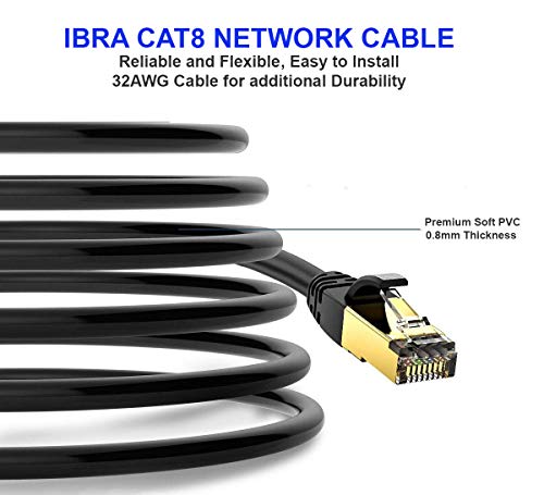 CAVO ETHERNET AD ALTA VELOCITÀ IBRA: il cavo Ethernet Cat8 supporta la larghezza di banda fino a 2000 MHz e 40 Gbps di velocità di trasmissione dati in modo da poterti connettere ai tuoi segmenti LAN / WAN e dispositivi di rete alla massima velocità.