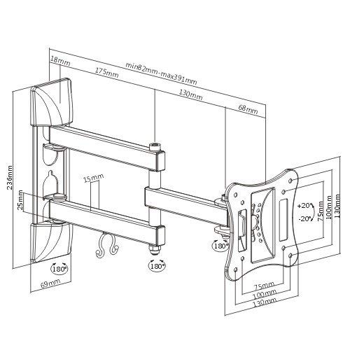 Sottile e compatta: il movimento completo consente la massima flessibilità, inclina, estendi e ruota la tua TV fino a 391 mm dalla parete in ogni direzione per una facile visualizzazione da qualsiasi posizione in una stanza.