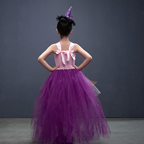 ♦【Abito da Strega di Lusso per Bambini】Costume da strega di Halloween da bambina per bambini, vestito da festa di carnevale cosplay con scollature quadrate senza maniche e tulle a strati, adatto a bambini di età compresa tra 2 e 12 anni.In questo costume, sei una strega da favola.