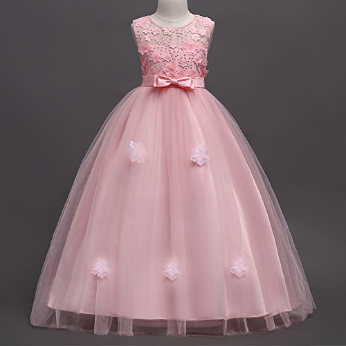 IBTOM CASTLE Vestito Principessa per Ragazza Elegante Floreale Fiore Pizzo Abiti da Sera Matrimonio Damigella d'Onore Tulle Rose 14-15 Anni