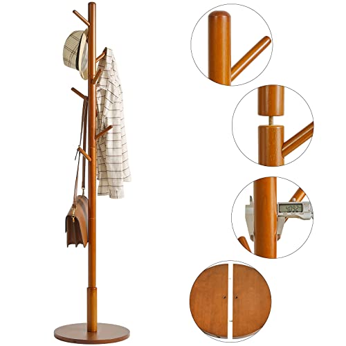 IBUYKE Appendiabiti Da Terra Con 8 Ganci, in Albero Della Gomma, Appendiabiti Fondo Rotondo, Per Corridoio, Camera Da Letto, Casa, Ufficio, Sciarpa, Borsa, Vestiti, Marrone WD-113