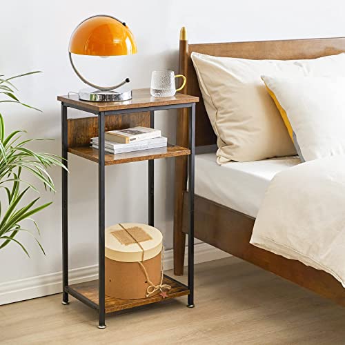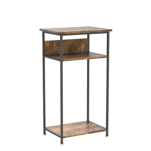 IBUYKE Tavolino Alto, Tavolino a 3 Livelli, Tavolo Telefono con Ripiani Portaoggetti, Comodino, per Soggiorno, Camera da Letto, Cucina, Marrone Rustico TMJ408H