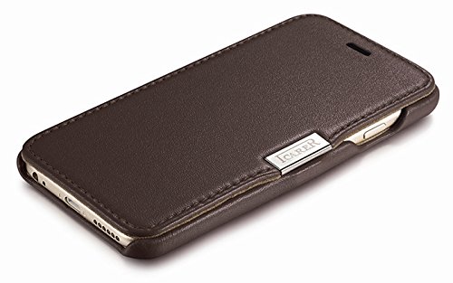 Icarer Cover in Pelle, per Apple iPhone 5 / 5S e iPhone 6, Apertura Laterale, ultraslim, in Vera Pelle Marrone Dunkelbraun - Glattleder iPhone 6 (4,7'')