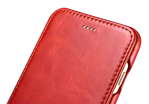 ICARER Custodia per Apple iPhone 8 Plus e iPhone 7 Plus (5,5 pollici), in vera pelle, con custodia protettiva, pieghevole, sottile, look vintage, colore: rosso