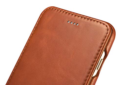 ICARER Custodia per Apple iPhone 8 Plus e iPhone 7 Plus (5,5 pollici), custodia in vera pelle, custodia protettiva pieghevole, sottile, look vintage, marrone