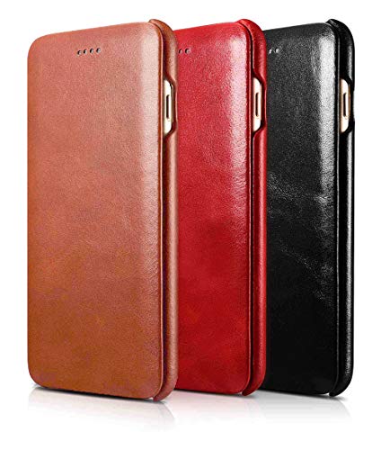 ICARER - Custodia di lusso per Apple iPhone 8 Plus e iPhone 7 Plus (5,5"), con esterno in vera pelle, apertura a libro, ultra sottile, effetto vintage