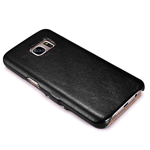 ICarer Custodia Vera Pelle per Samsung Galaxy S7 Flip Case Etui Leather Cover di lusso Nero