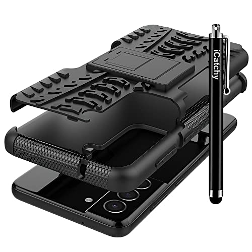 ICatchy Custodia per Samsung Galaxy S21 FE, resistente, resistente, a doppio strato ibrido antiurto compatibile per Samsung Galaxy S21 FE custodia per telefono (nero)